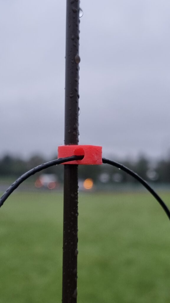 Wet QMXHalf wave wire for 20m with K6ARK matching transformer.The top piece I designed and 3d printed from TPU for the antenna wireNice view!